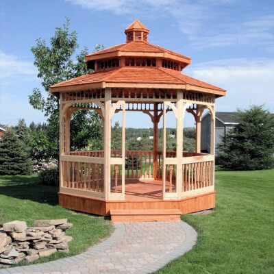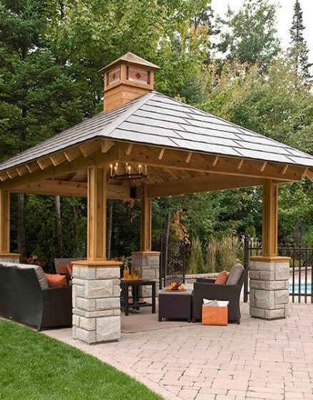 Wood and stone gazebo by the pool – Vistech Laval / Laurentides