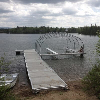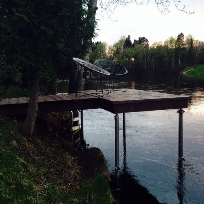 Residential wooden dock on the water supported by galvanized Postech screw piles Residential wooden dock on the water supported by galvanized Postech screw piles