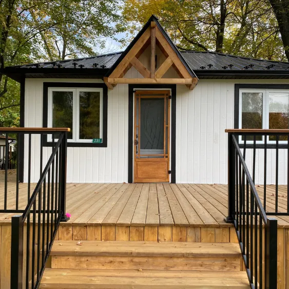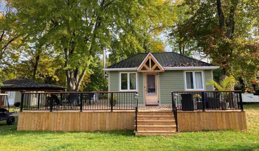 To add living space and make a cabin more convivial, nothing could be simpler than to build a beautiful wooden wrap-around deck. Imagine it with beautiful deck furniture, plants, maybe a hammock and a BBQ! Happiness abounds!