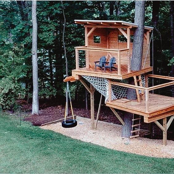 Why settle for one when you can have two? Building a multi-storey treehouse not only doubles the fun but also sets your backyard apart, making it the envy of the neighborhood.