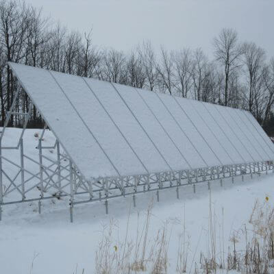 Solar panels in the winter, on Postech screw piles
