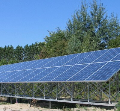 Solar pannels on a large field, on Postech screw piles