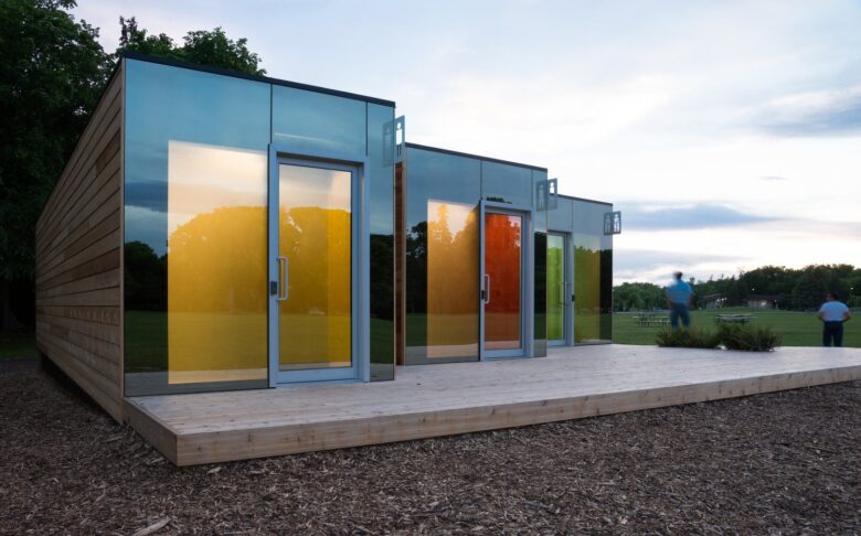 Public washrooms of a park in Winnipeg, on Postech thermal piles