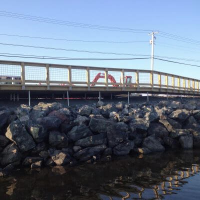 Reconstruction of a footbridge on the beach in Prince Edward Island, On Postech thermal piles
