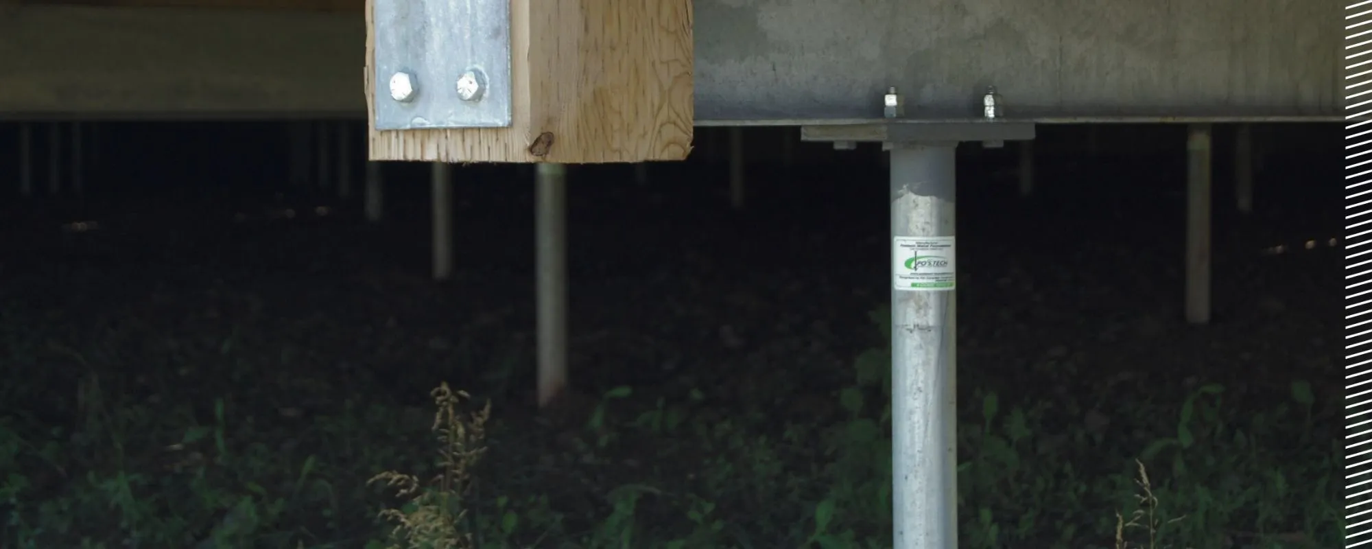 Fixed heads transmit forces applied to the piles, whether lateral, compressive, or tensile. They consist of a flat plate that connects to the structure on top, and a tube that is bolted to the installed pile supporting the structure from below. Postech fixed heads can connect directly to wood, concrete, or steel structures.