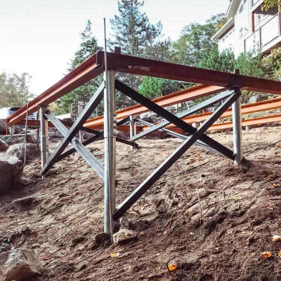 Adjustable heads can be used on projects where lateral or bending forces are not an issue. Their threaded rod makes final leveling of the head in the field quick and easy. This makes them ideal for light construction and residential projects. Adjustable heads connect to the piles with adapters. Where pull-out forces are an issue, a wind-lift adapter must be used.