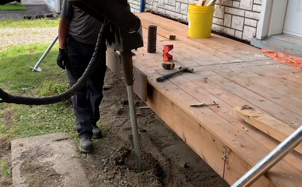 In the event where a pile must be installed in the middle of an existing structure, the certified Postech installer will ask the customer to remove a few deck floorboards in order to insert the screw pile through the structure. A simple step allowing a precise installation. This enables to reinforce the structure, stabilize or simply modify your foundation type.