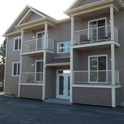 Patio blanc avec balustrade noire pour condos – Vistech Estrie