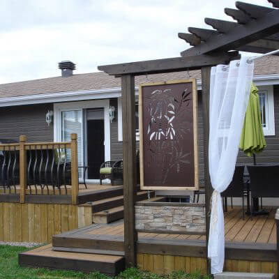 Patio à deux paliers avec un écran d’intimité – Vistech Beauce-Appalaches