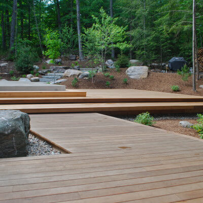 Grande terrasse en bois sans rampes -Postech Muskoka