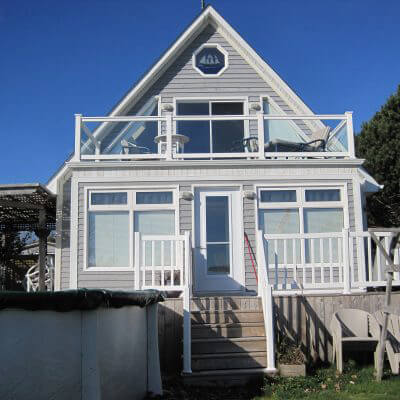 Pool deck attached to a small house